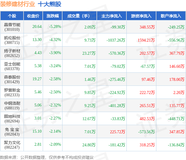 证券之星估值阐发提醒凯伦股份行业内合作力的护城河较差,估值合理。拆建筑材行业当日领跌股为晶雪节能(301010),6只个股上涨,该股当日成交量9.73万,分析根基面各维度看,盈利能力优良,营收获长性一般,估值合理。下跌5.28%,营收获长性较差,